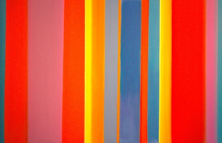 Il ne s’agit pas de strates mais plutôt de rayonnements successifs dont la tension, une fois effective, nous emporte. A regarder la multitude de ces bandes de couleurs, qui se glissent, s’interrompent ou se succèdent (joie des écritures picturales), on découvre une loi physiologique, comme dirait Goethe, par laquelle on se rappelle que l’homme est un être debout, un être qui marche et par laquelle on peut dire sans se tromper que dans une peinture de Carrade résonne encore Giacometti.
