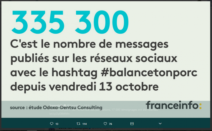 Un tweet de France Info (capture d'écran du site twitter.com). Il ne compte pas les #MyHarveyWeinstein.
