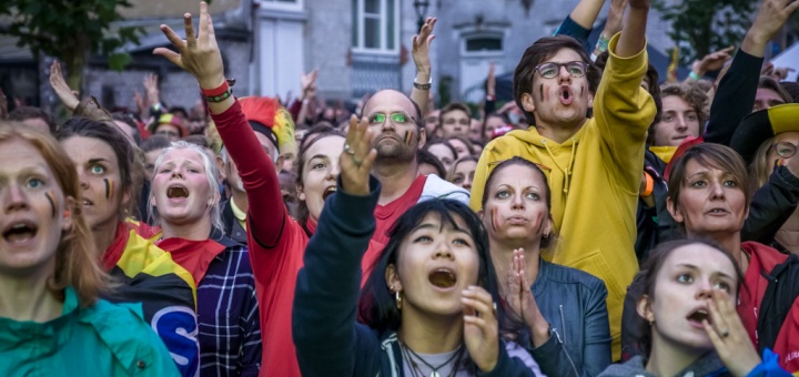 La foule belge frémit. Qu'on me permette un aparté: mes racines étant des deux côtés, j'ai regardé ce match avec un détachement absolu, les deux vainqueurs me convenant. Mais le jeu a moins de saveur quand on ne vibre pas unilatéralement. Photo © Jean-Frédéric Hanssens