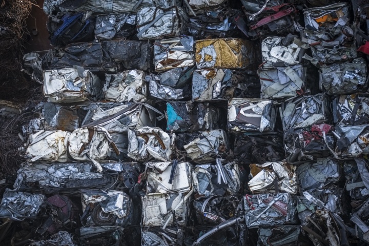 Aujourd'hui, ces voitures qui ont roulé au diesel et à l'essence, sont réduites en petits cubes. Mais les voitures électriques risquent d'être bien plus chères à dépolluer. Photo © Jean-Frédéric Hanssens