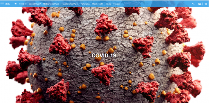 La page d'accueil du site de Pfizer Belgique
