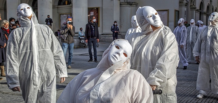 Pour que la culture ne soit plus fantomatique... Photo prise, ce dimanche à StillStandingForCulture place de la Monnaie à Bruxelles, © Jean-Frédéric Hanssens