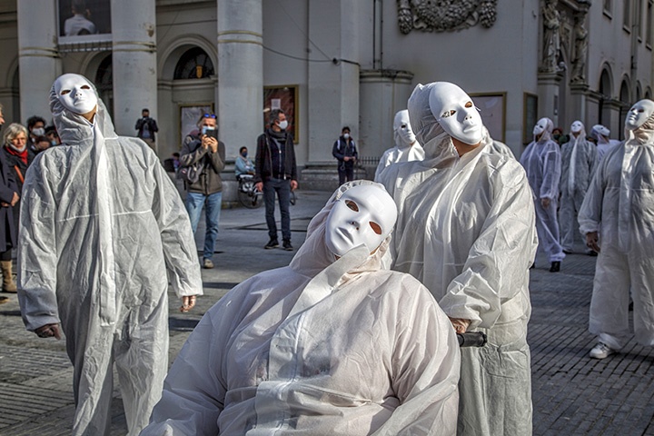 Pour que la culture ne soit plus fantomatique... Photo prise, ce dimanche à StillStandingForCulture place de la Monnaie à Bruxelles, © Jean-Frédéric Hanssens