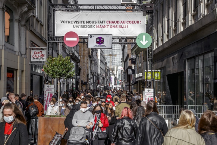 Si selon Saint-Just, le bonheur est une idée neuve en Europe, dans sa capitale, à Bruxelles, la rue Neuve donne une idée d'où peut venir le malheur. Photo © Jean-Frédéric Hanssens