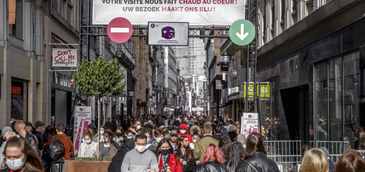 Si selon Saint-Just, le bonheur est une idée neuve en Europe, dans sa capitale, à Bruxelles, la rue Neuve donne une idée d'où peut venir le malheur. Photo © Jean-Frédéric Hanssens