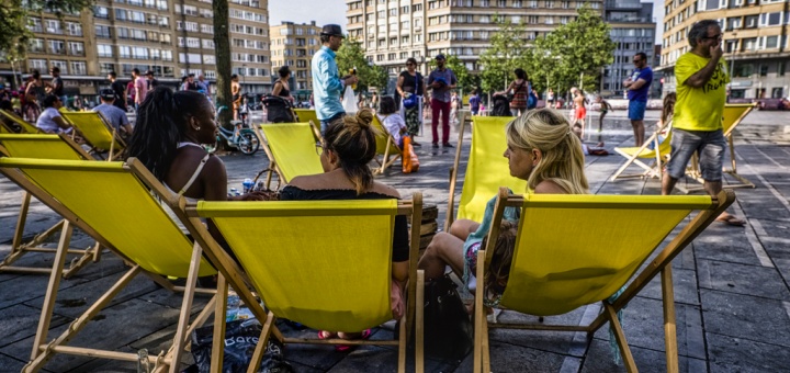 Sur les transats de la place Flagey, j'écris ton nom - mais si je me trompais de mot? Photo © Jean-Frédéric Hanssens