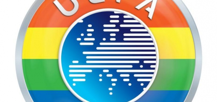 N'étant pas à une contradiction près, l'UEFA a tenté de se dédouaner de l'interdiction faite d'illuminer le stade de Munich par les couleurs de l'arc-en-ciel... en transformant de même son logo. C'est sans doute ce qu'on appelle du football panique. (Capture d'écran)
