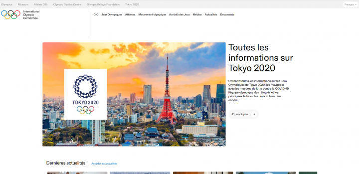 Capture d'écran de la page d'accueil du Comité olympique en date du 9 juillet