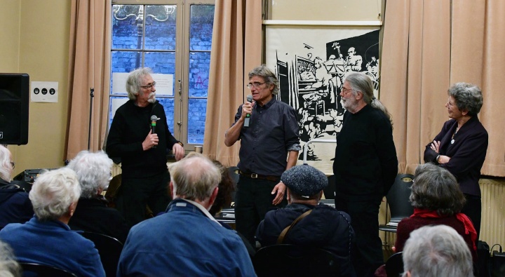 De gauche à droite, Michel Noirret, Marcel Leroy, Jean Rebuffat et Gabrielle Lefèvre racontant la naissance et la vie d'Entre les lignes. Photo © Laurent Berger