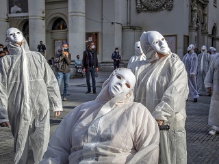 Pour que la culture ne soit plus fantomatique... Photo prise, ce dimanche à StillStandingForCulture place de la Monnaie à Bruxelles, © Jean-Frédéric Hanssens