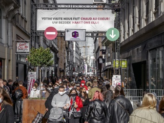 Si selon Saint-Just, le bonheur est une idée neuve en Europe, dans sa capitale, à Bruxelles, la rue Neuve donne une idée d'où peut venir le malheur. Photo © Jean-Frédéric Hanssens