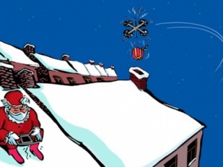 Pour limiter une pandémie, on sait depuis deux siècles que la quarantaine - version moderne, la distanciation sociale - est une nécessité. Le père Noël 2020 vit avec son siècle... Dessin © Jean-Claude Salemi