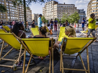 Sur les transats de la place Flagey, j'écris ton nom - mais si je me trompais de mot? Photo © Jean-Frédéric Hanssens