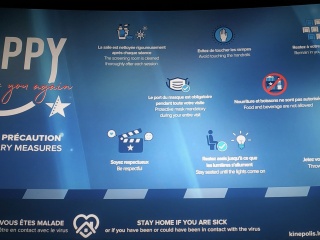Avec des mesures strictes d'écartement des spectateurs les uns des autres, outre les mesures détaillées sur l'écran, à Luxembourg, les cinémas sont ouverts depuis plus de deux mois. Chacun décide d'y aller, ou non. Utopie ou sagesse? Photo © Jean Rebuffat