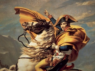 Napoléon franchissant les Alpes. Pardon, David, d'avoir coupé ton œuvre, mais à l'époque, elle faisait le buzz: il l'a peinte cinq fois. Aujourd'hui, on dirait un mème.