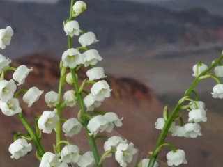 Un peu de muguet du jardin avec à l'arrière-plan un tableau montrant le début du Sahara en Algérie. Photo © Jean Rebuffat